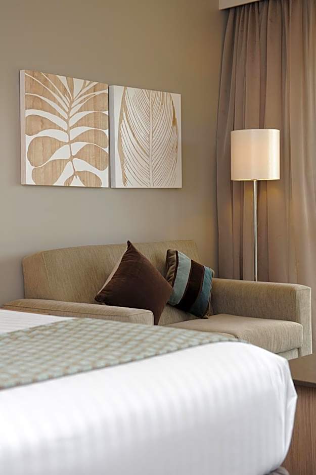 This room is set among the gardens in a quiet location with rural views. The open plan suite features 42 inch LCD TVs, sofa lounge with stone coffee table and large glass french doors opening out to a private patio area.
